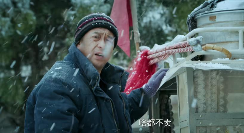 而本剧预告片最后,晚年落寞的胡三元,在大雪中一边搬大鼓一边唱起秦腔,“人面桃花相映红、人面不知何处去,桃花依旧笑春风”,