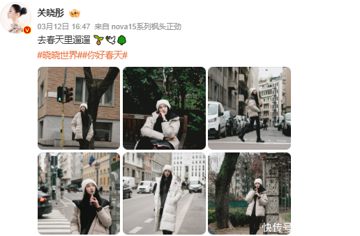 春日的美好,在于它的温柔与治愈,而关晓彤的这组随拍,恰好将这份美好诠释得恰到好处。街头的烟火气息、温柔的春风、松弛的姿态,还有她眼底的惬意,交织成一幅治愈又美好的春日画卷。她用镜头定格下春日里的自己,也传递出一种松弛自在的生活态度——不必追赶时间,不必刻意完美,偶尔放慢脚步,走进春天,享受片刻的悠闲,便是最治愈的时光。